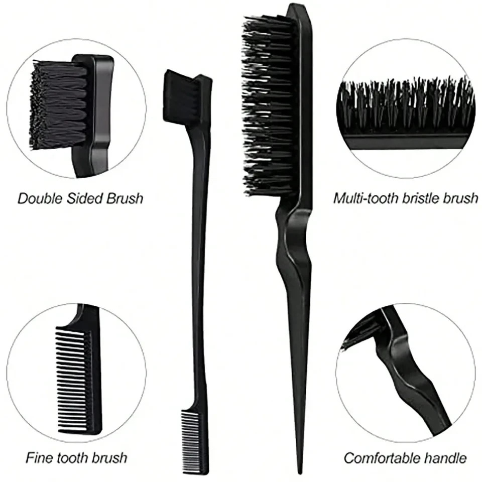 3 PCS Comb Set Edge Brush Bristle Hair Brush Rat Tail Comb, Hair Brush, Curly Hair Brush
