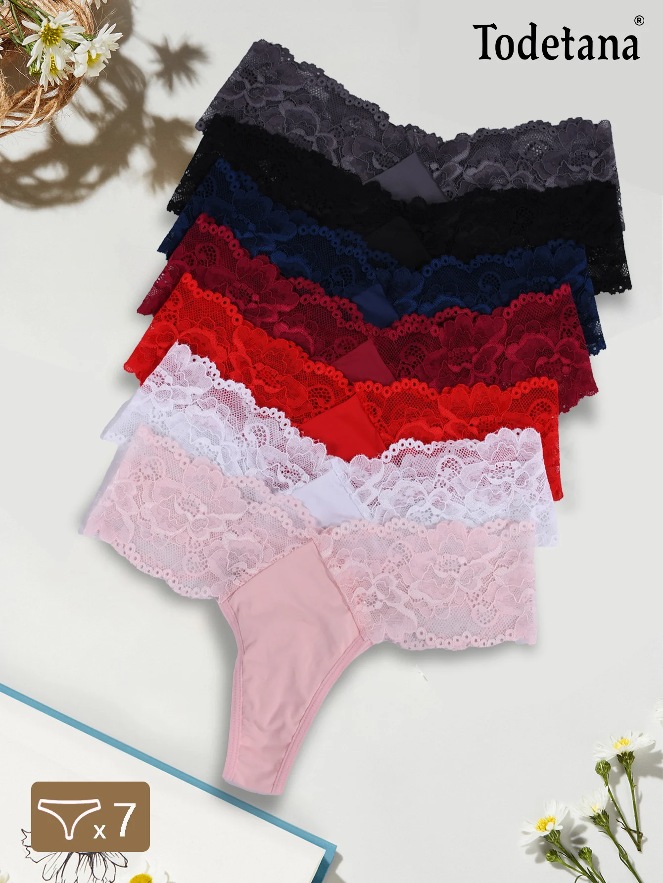 7- Pack Mid-Rise Sexy Lace Panties for Women Floral Hollow-Out Design, Lightweight and Breathable, Everyday Comfortable Fit |