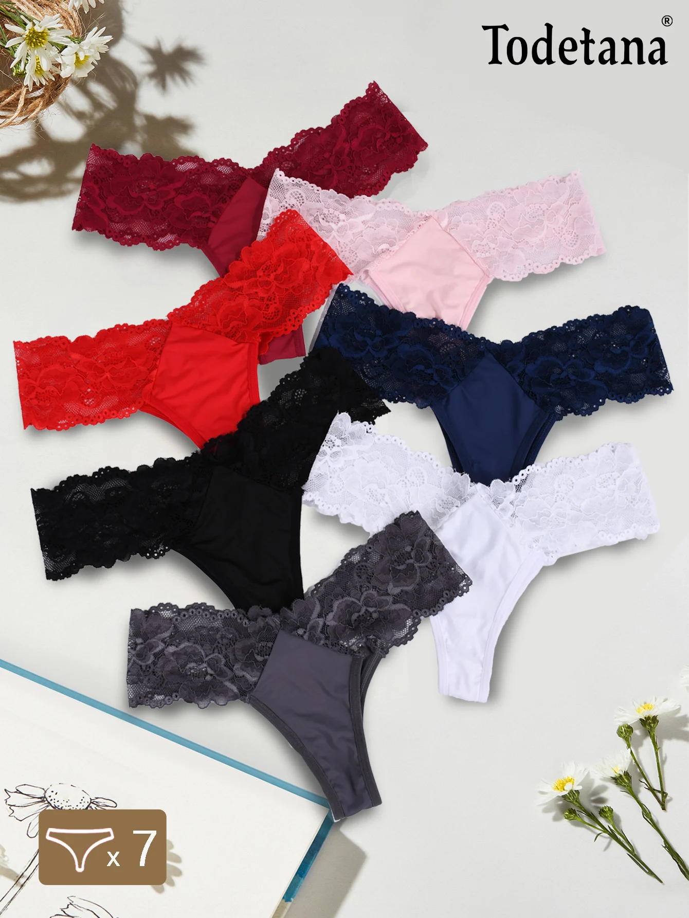 7-Pack Mid-Rise Women's G-String Floral Hollow-Out Design Lightweight Breathable Everyday Comfortable Fit-Made Spandex/Nylon