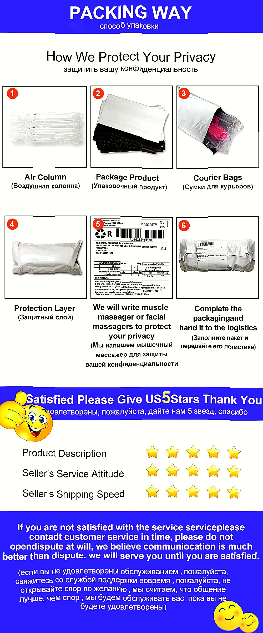 3.Please email to us befor leaving the negative feedback or opening any dispute on the site. Communication is the best way to solve the problems