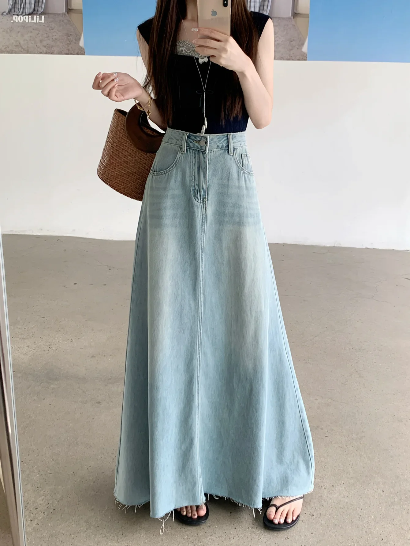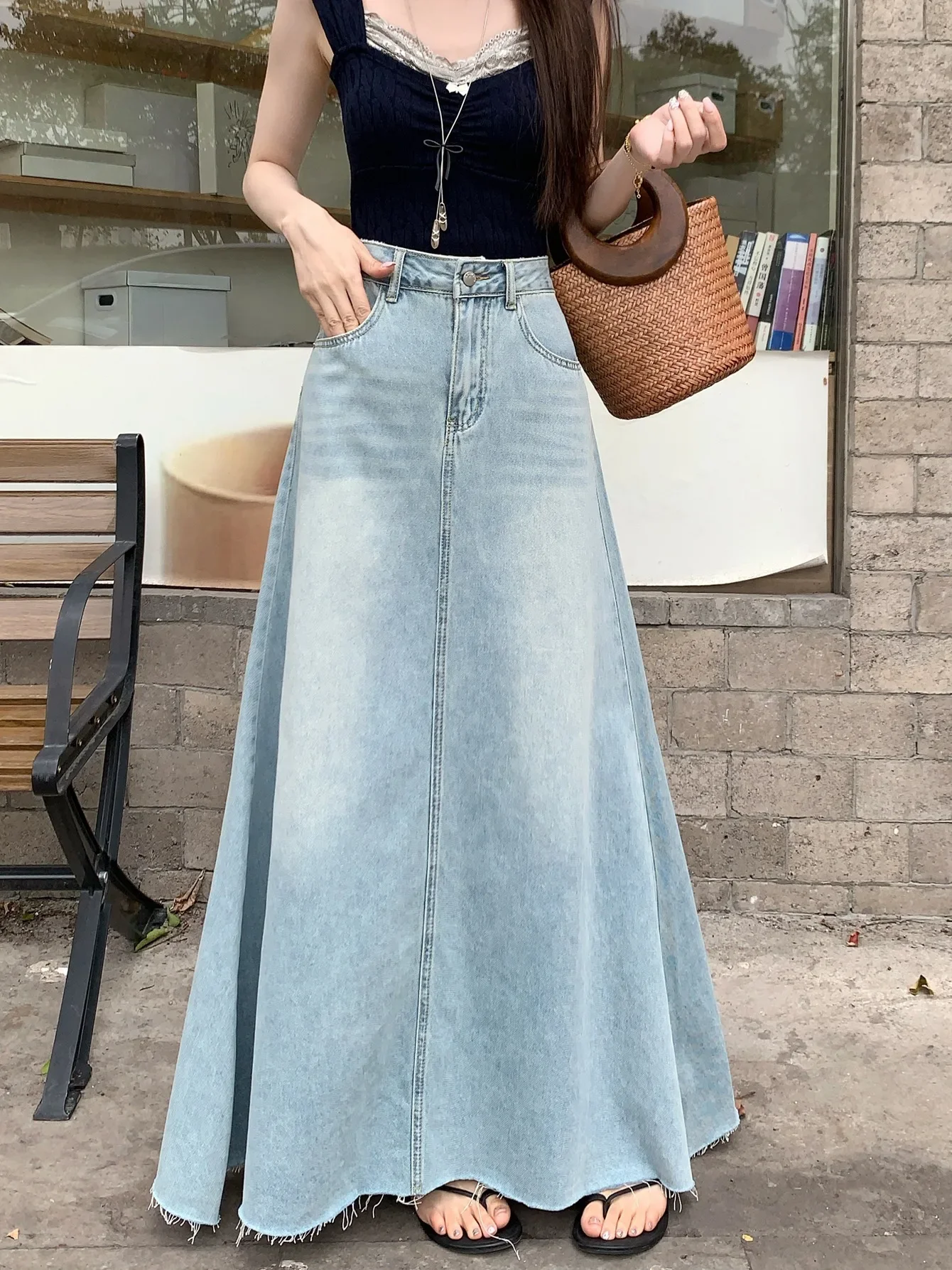• Retro American Style : Embrace vintage charm with this retro American-style denim skirt, perfect for spring fashion.