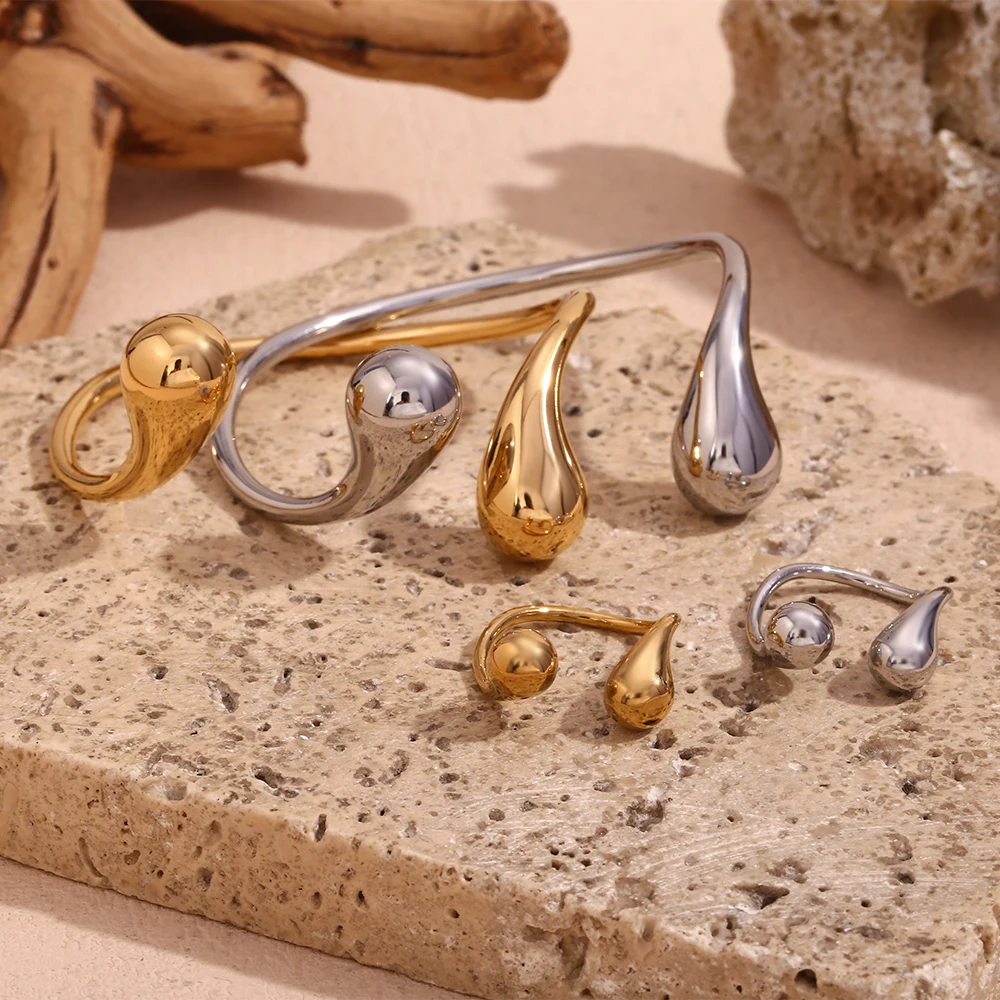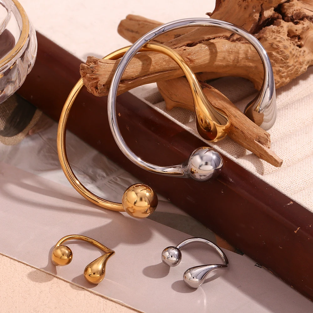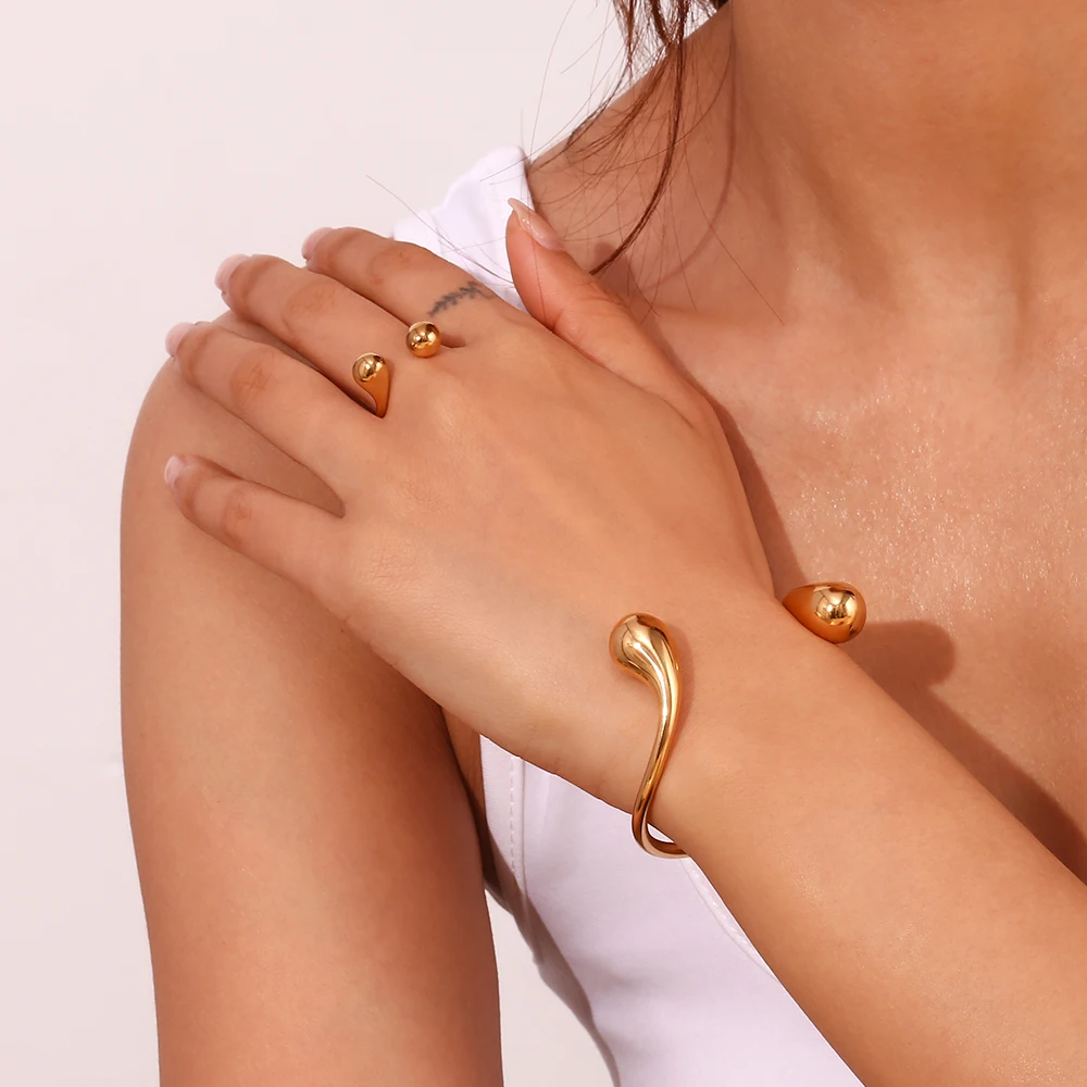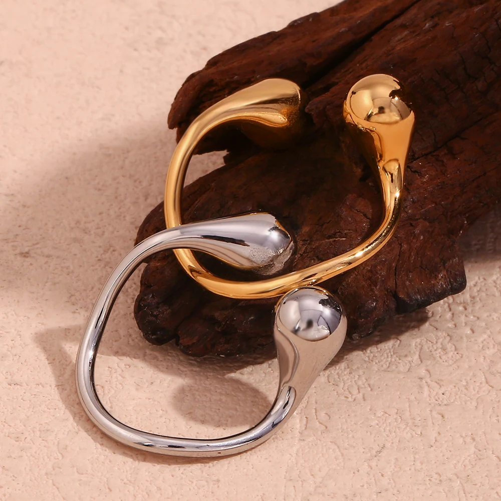 E. B. Belle Fashion Bracelet Stainless Steel Double Droplet Head Open Bracelet Ring PVD Plated Jewelry Gift