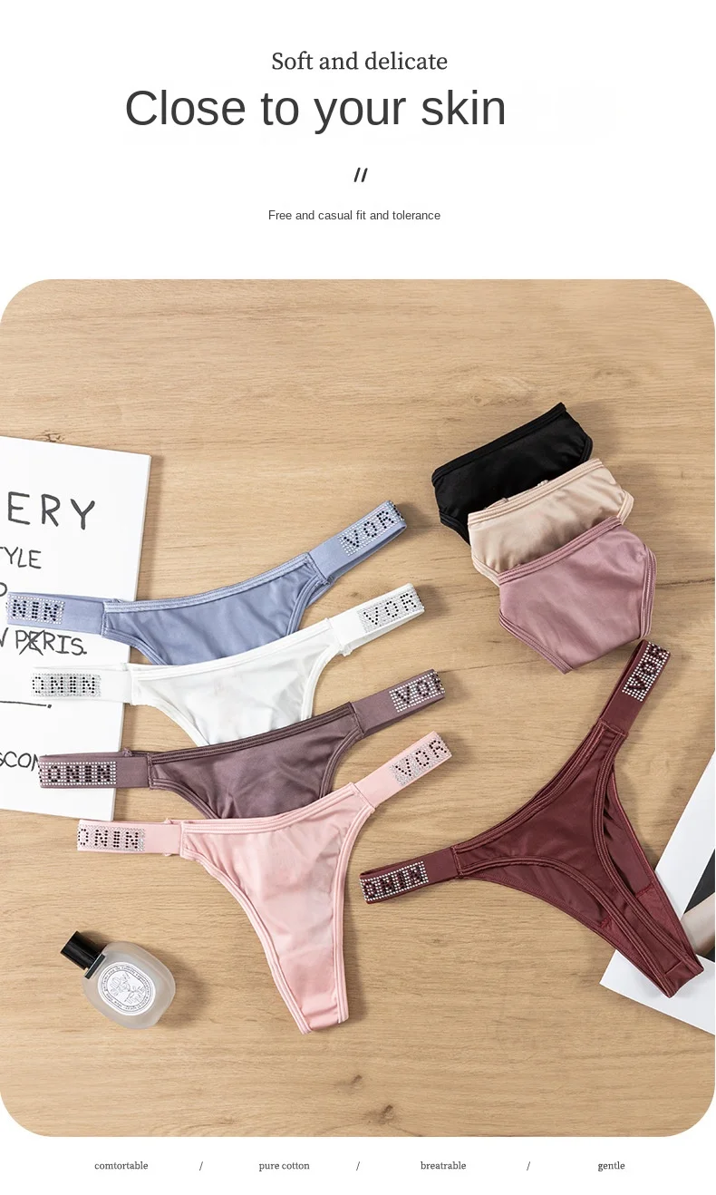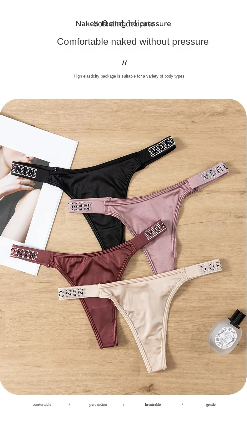Erotic Thong Panties Female Lust Wind Traceless Ice Silk Ladies T Pants Hot Diamond Sexy Hot Briefs Female Panties Women