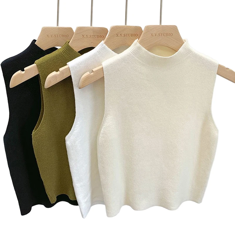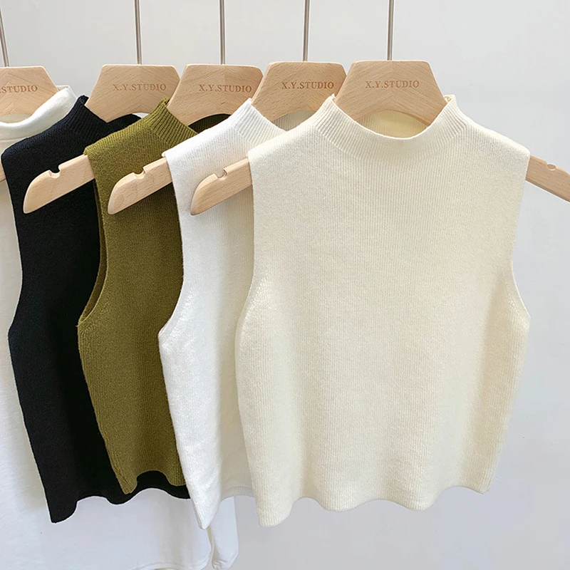 Fashion Half Turtleneck Knitted Tank Top Summer Women Casual Solid Color Sleeveless Vest spring and autumn