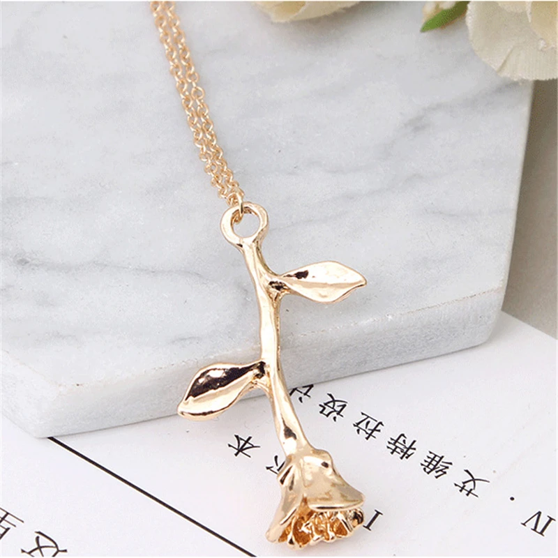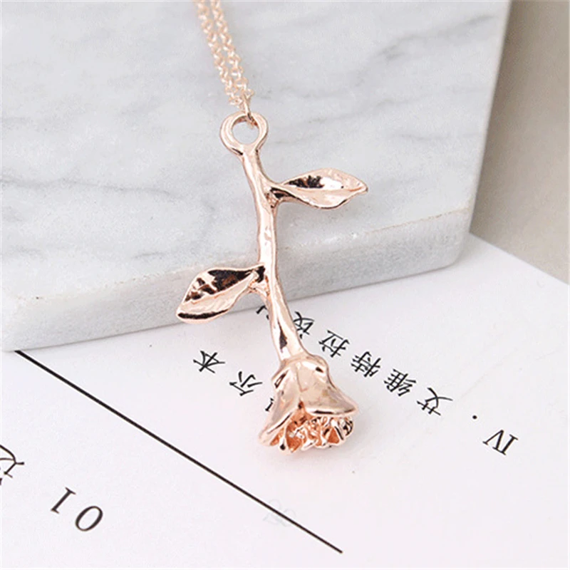 Fashion Jewelry Collier Rose Statement Pendant Necklace Women's Beauty Beast Jewelry Lovers Gifts For Women Girls