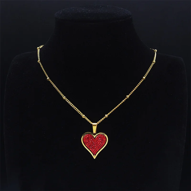 - Fashion Love Heart Stainless Steel Red Crystal Charm Necklace Gold Color Small Necklaces Jewelry collier coeur rouge