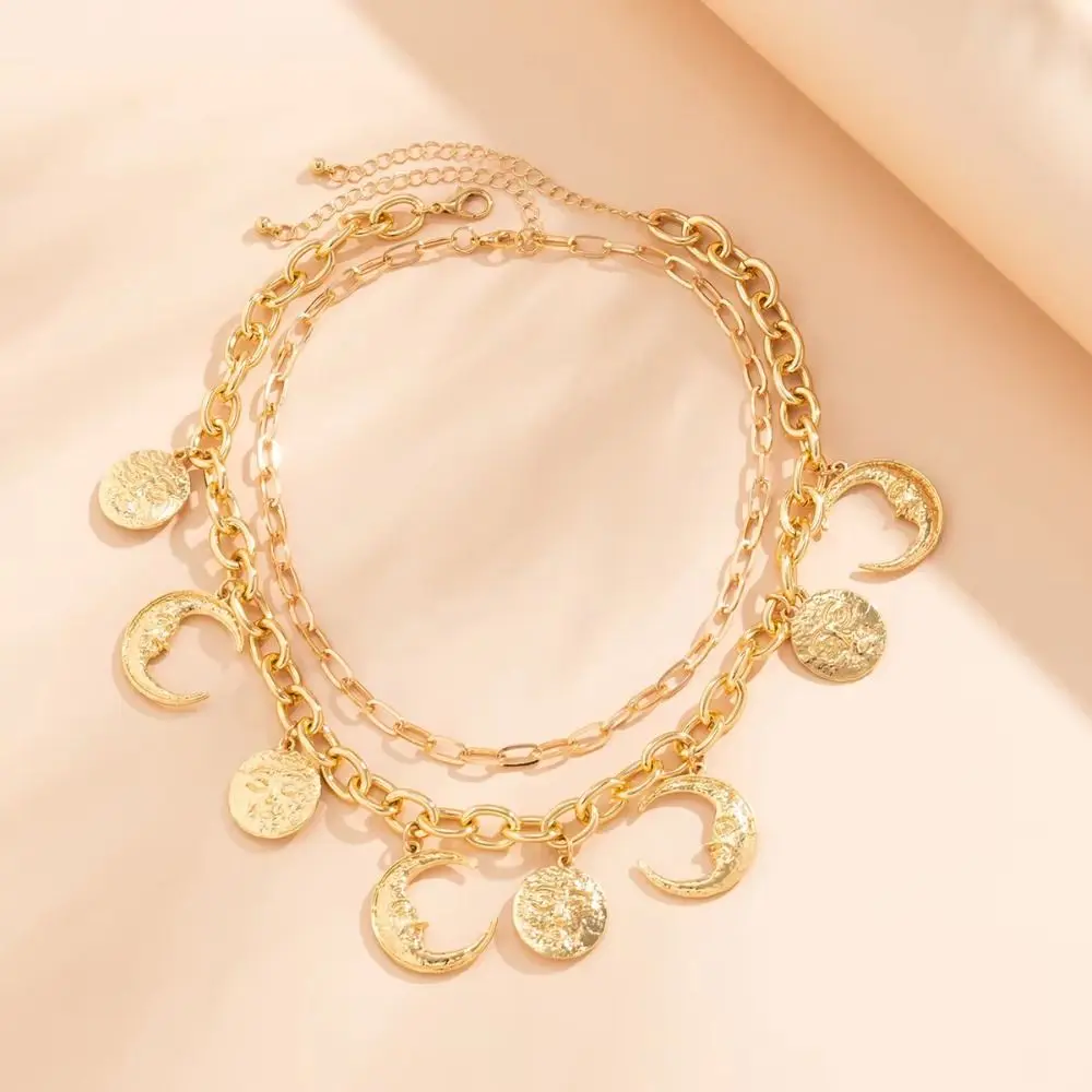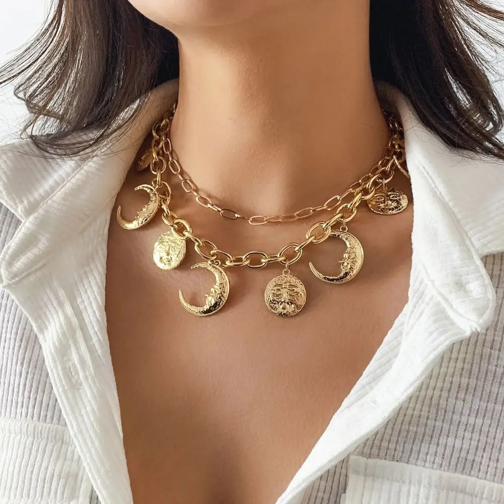 Fashion Multilayer Necklace Golden Geometry Metal Collarbone Chain Exquisite Women Jewelry Cowboy Cowgirl Choker Party
