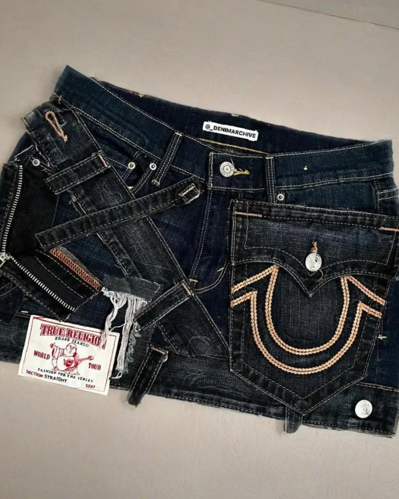 Gothic Punk High Waisted Short Skirt Hip Hop Rock Embroidered Patch Denim Skirt Fashionable Spicy Girl Ultra Short Denim Skirt