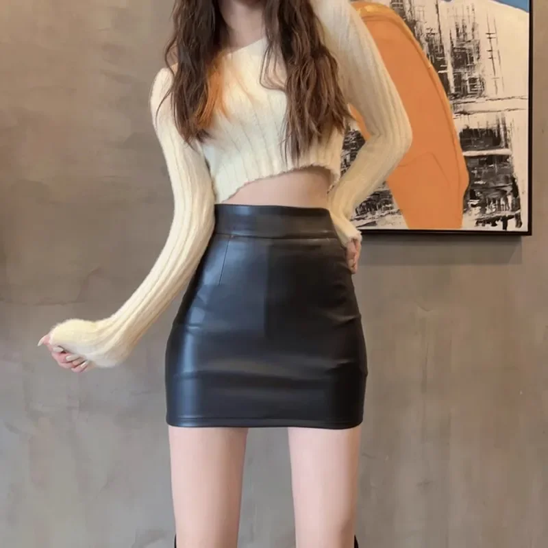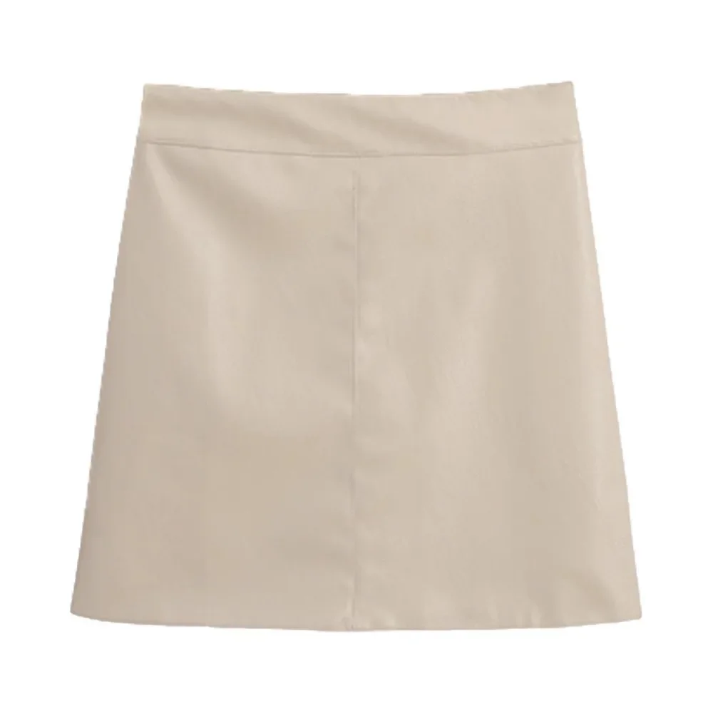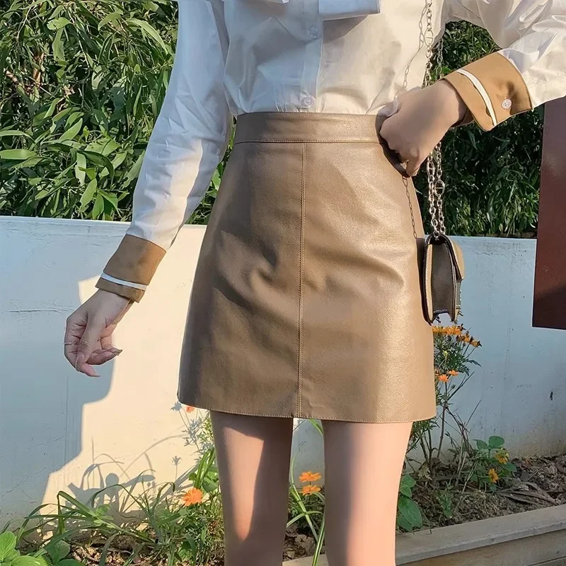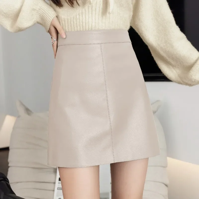 High Waist A- Line Mini Skirt for Women Early Spring PU Leather Short Skirt Slimming Effect Spring Fashion Polyester Fiber